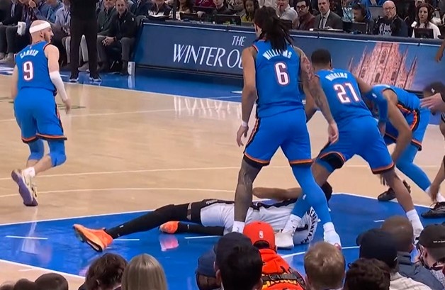 mk体育下载-滑了下!文班强攻转身倒地丢球失误 雷霆抢断速推反击